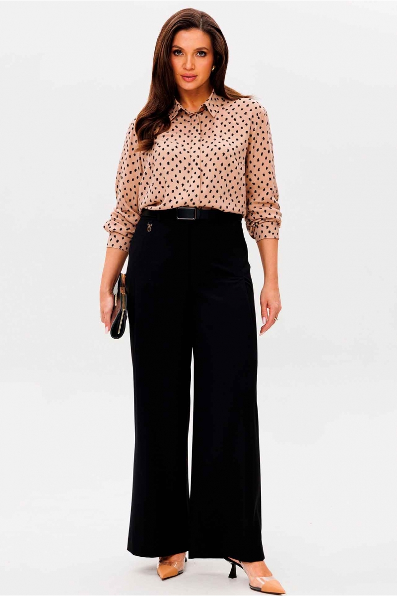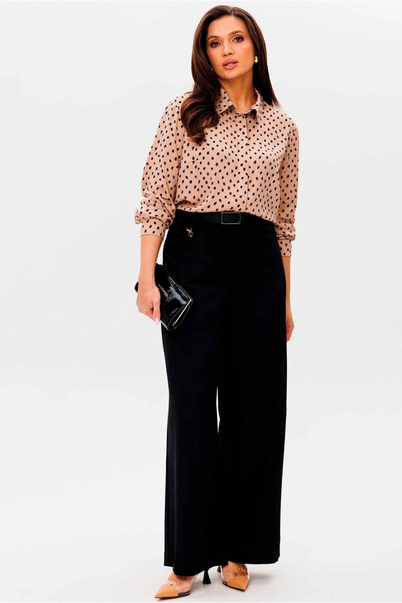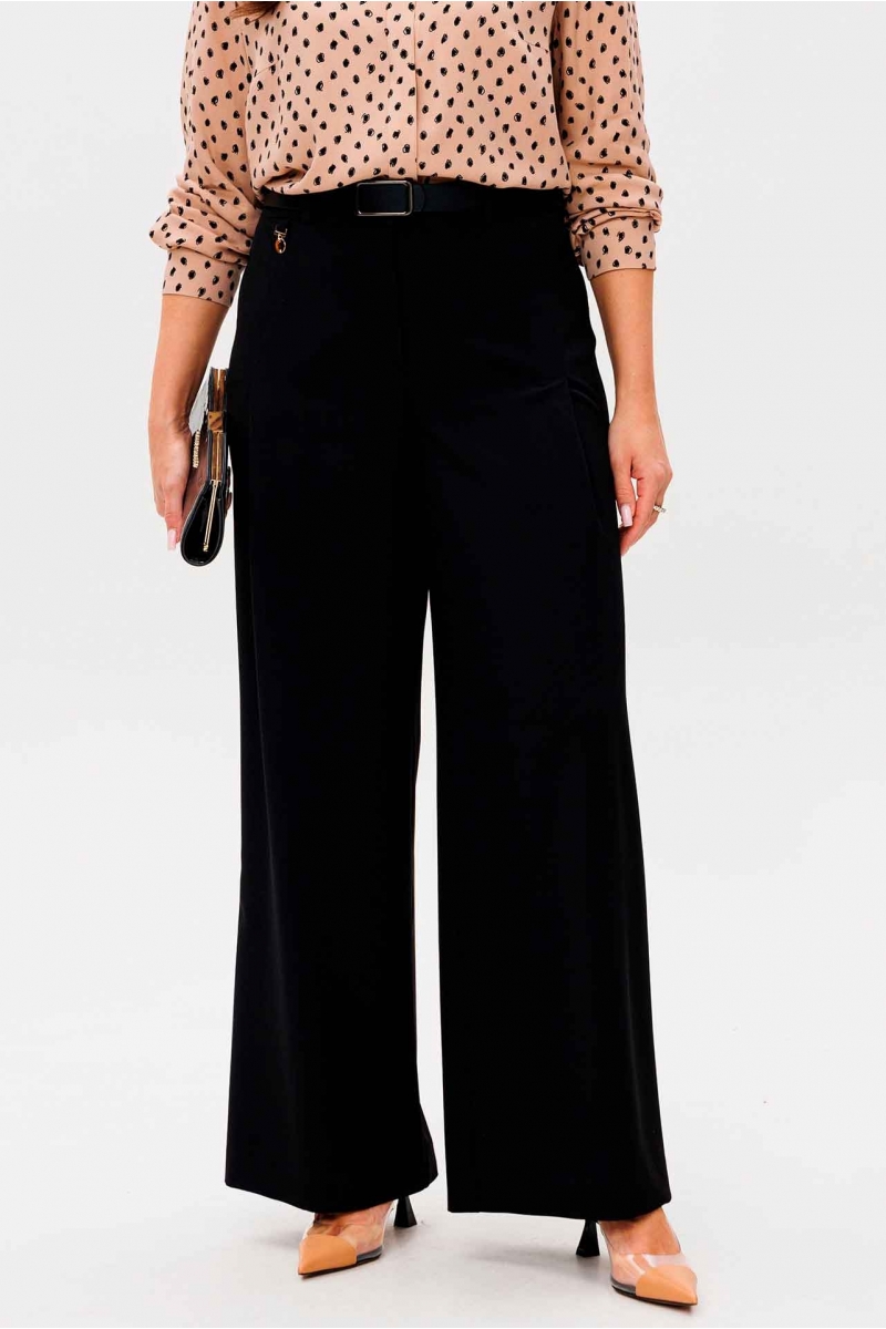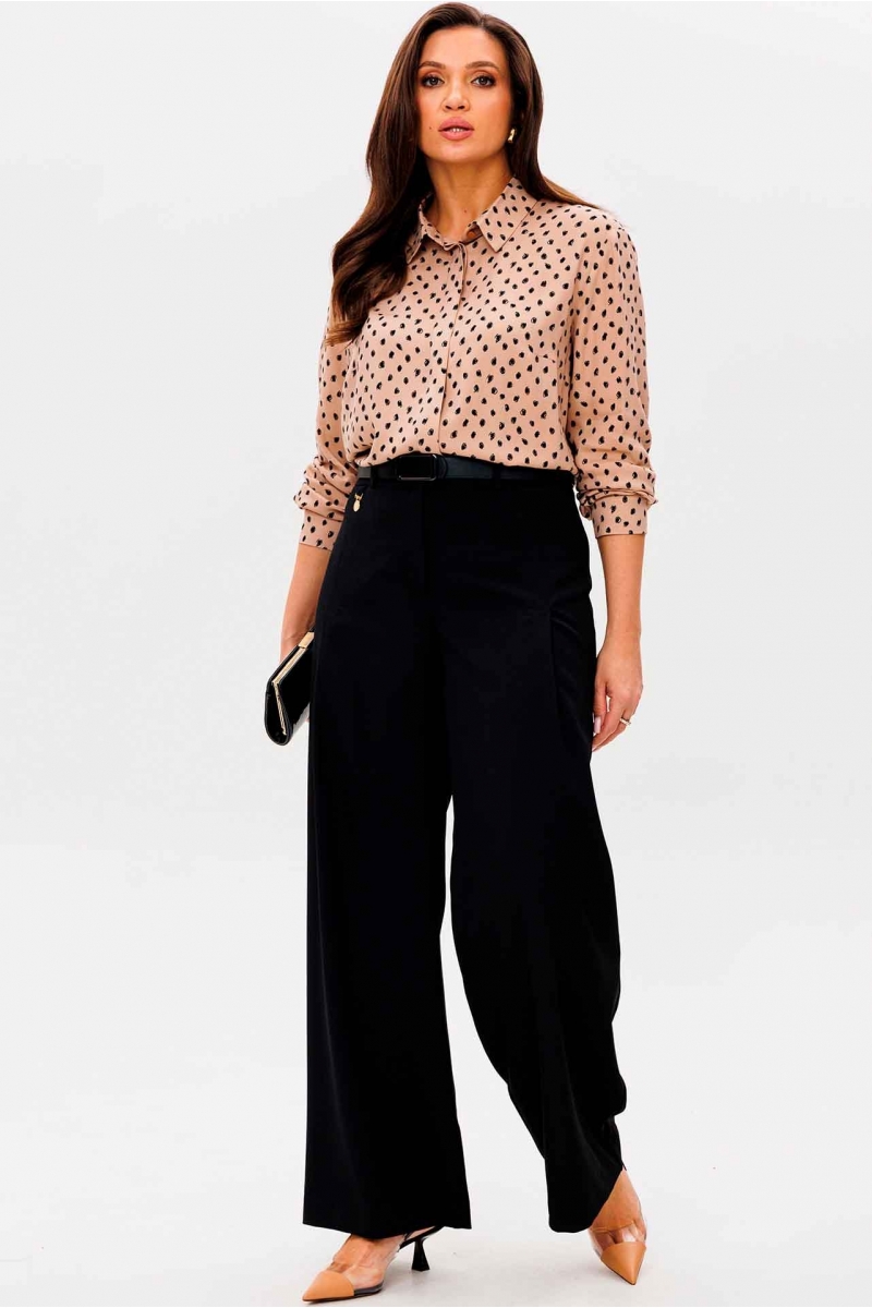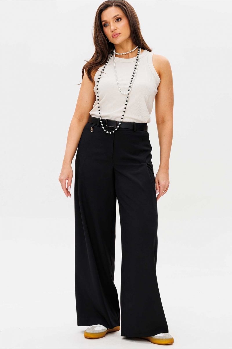 Чёрные широкие брюки и светлый топ