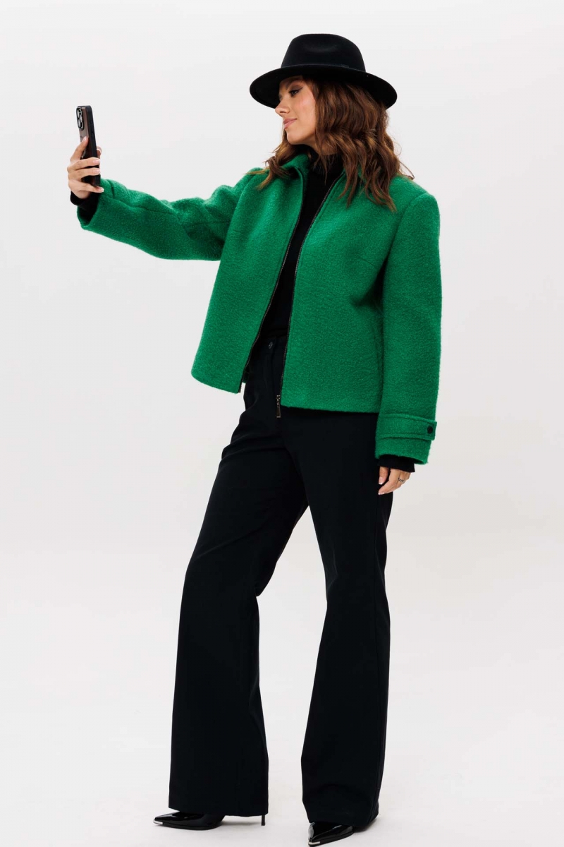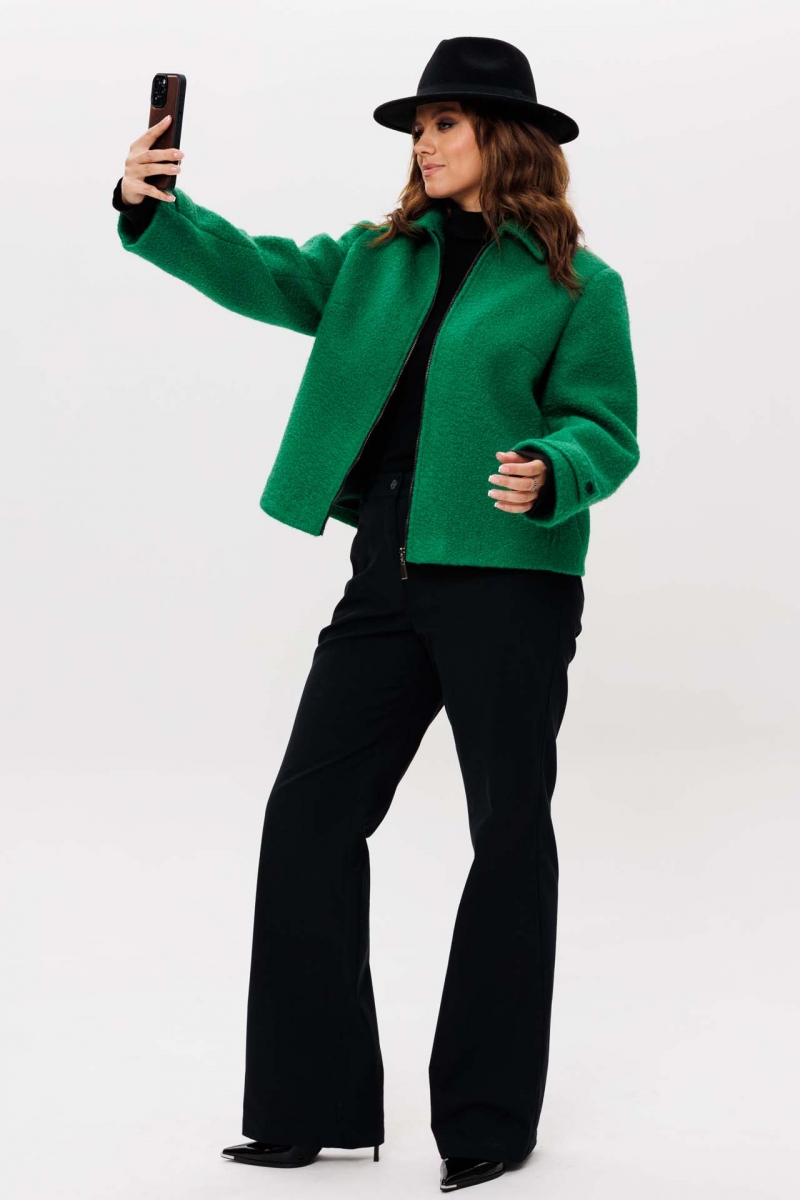 Модный укороченный жакет в зеленом цвете