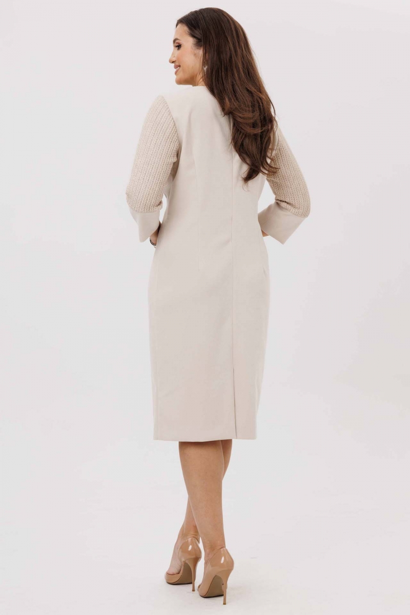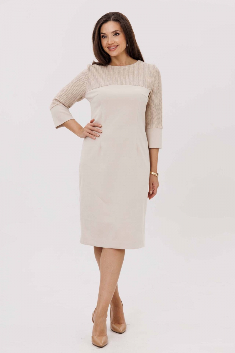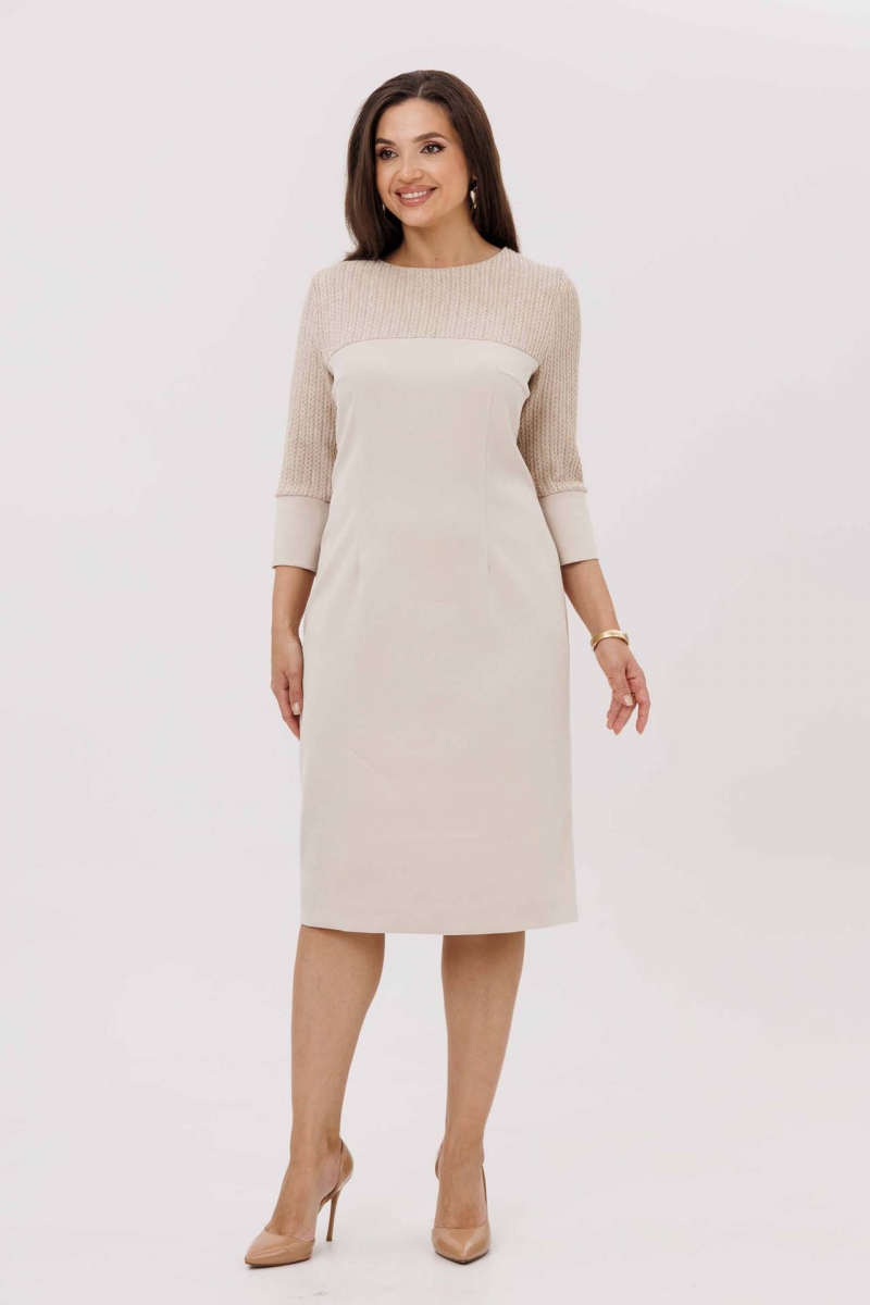 Платье из двух видов ткани. Фактурный трикотаж-косичка и плательно-костюмная ткань с эффектом напыления