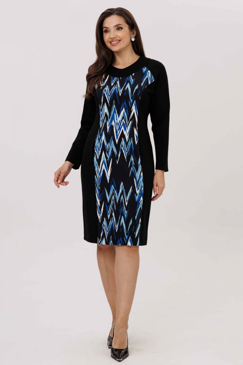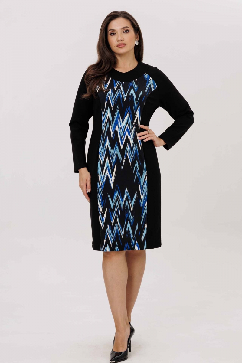 Черное платье с синим зигзагообразным рисунком