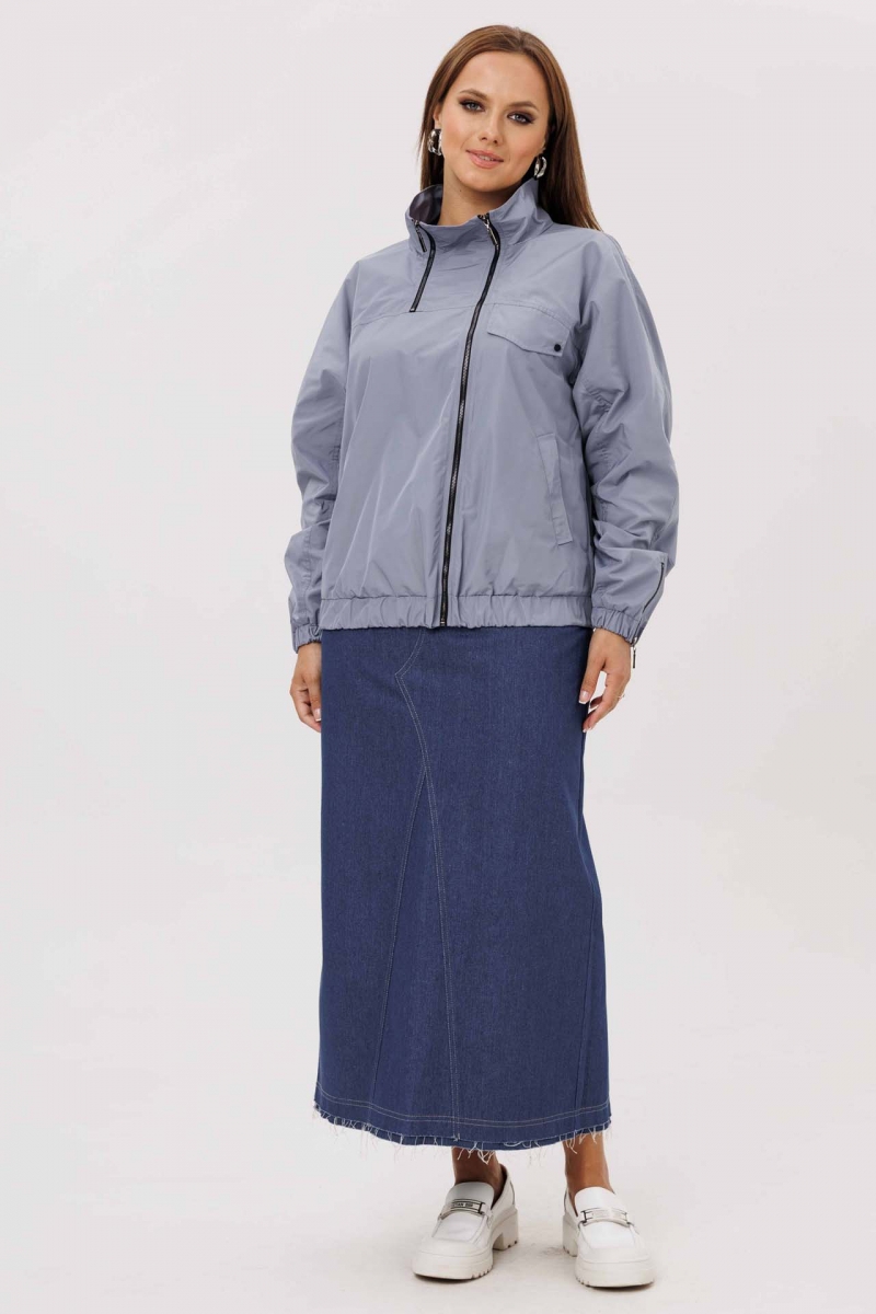 Жакет свободный со спущенными плечами на подкладке, по низу притачная планка, в которую продета резинка. По переду накладные карманы с клапанами. Воротник отложной. Рукава одношовные втачные по низу резинка.