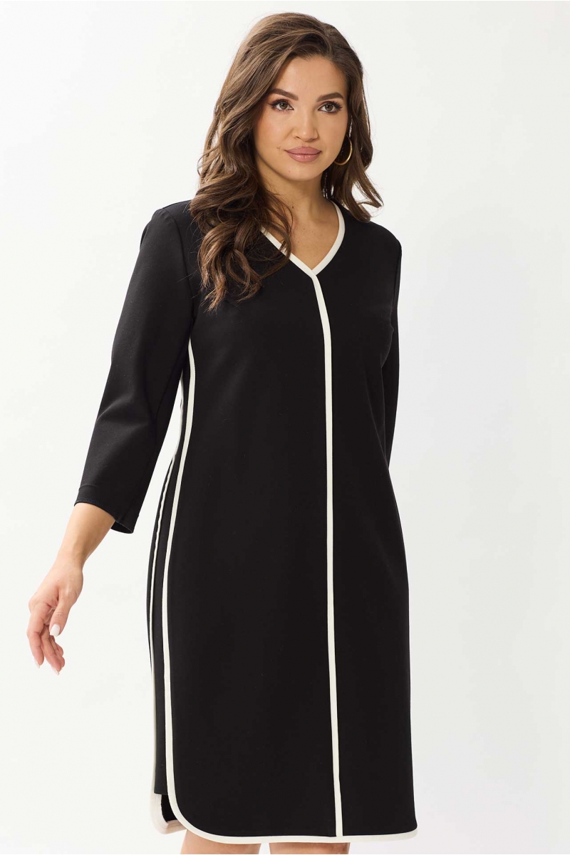 Прямое платье с контрастной отделкой визуально вытягивает силуэт и подчеркивает фигуру.