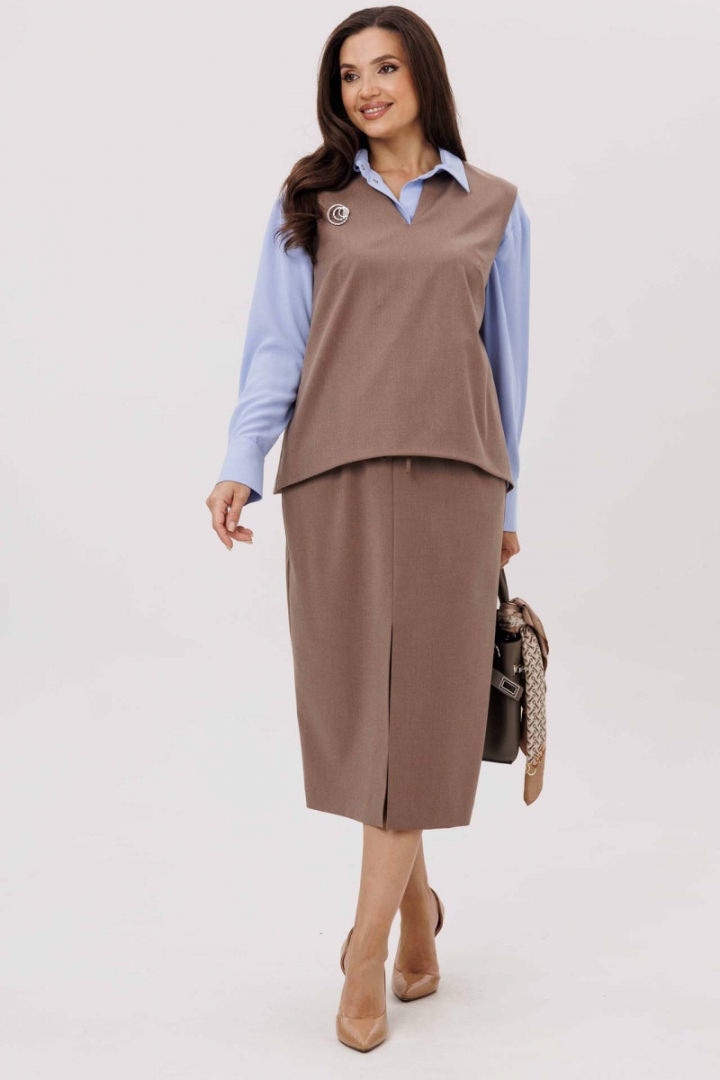 Жакет-безрукавка и юбка миди в капсульной расцветке.