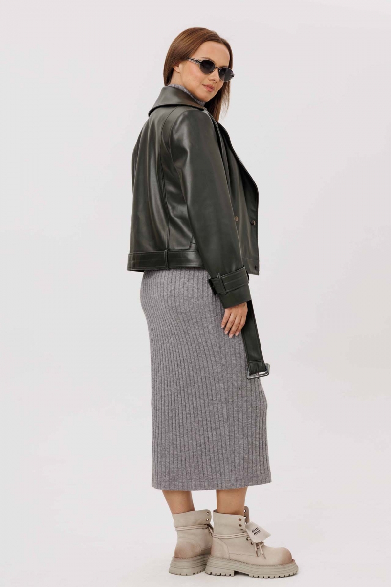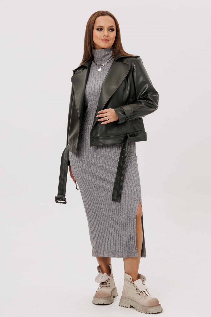 Платье из трикотажного полотна, полуприлегающего силуэта. Воротник стойка. Рукав - реглан с вытачкой по плечу. По переду боковой рельеф, заканчивающийся разрезом.