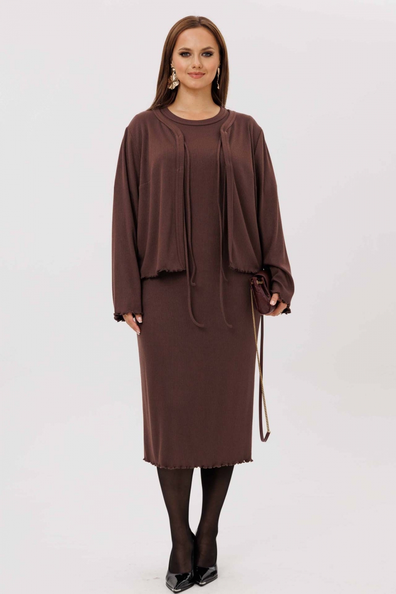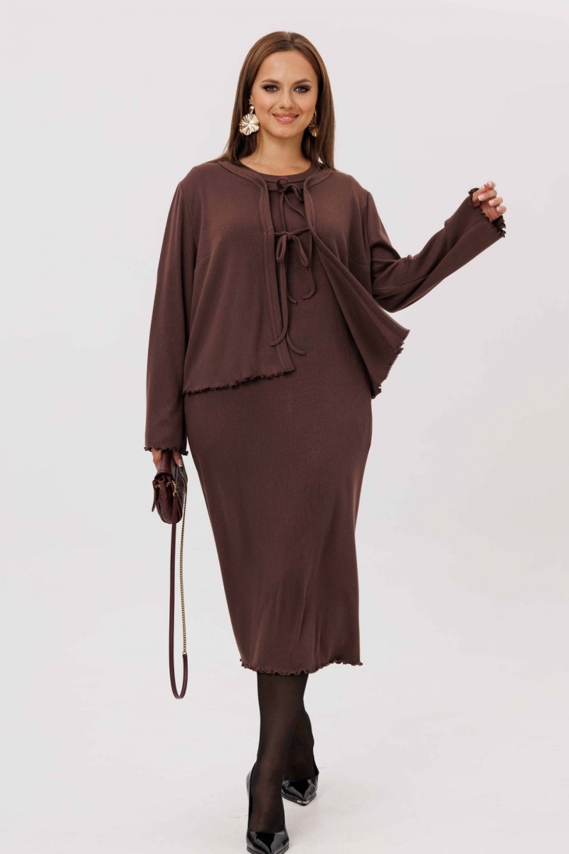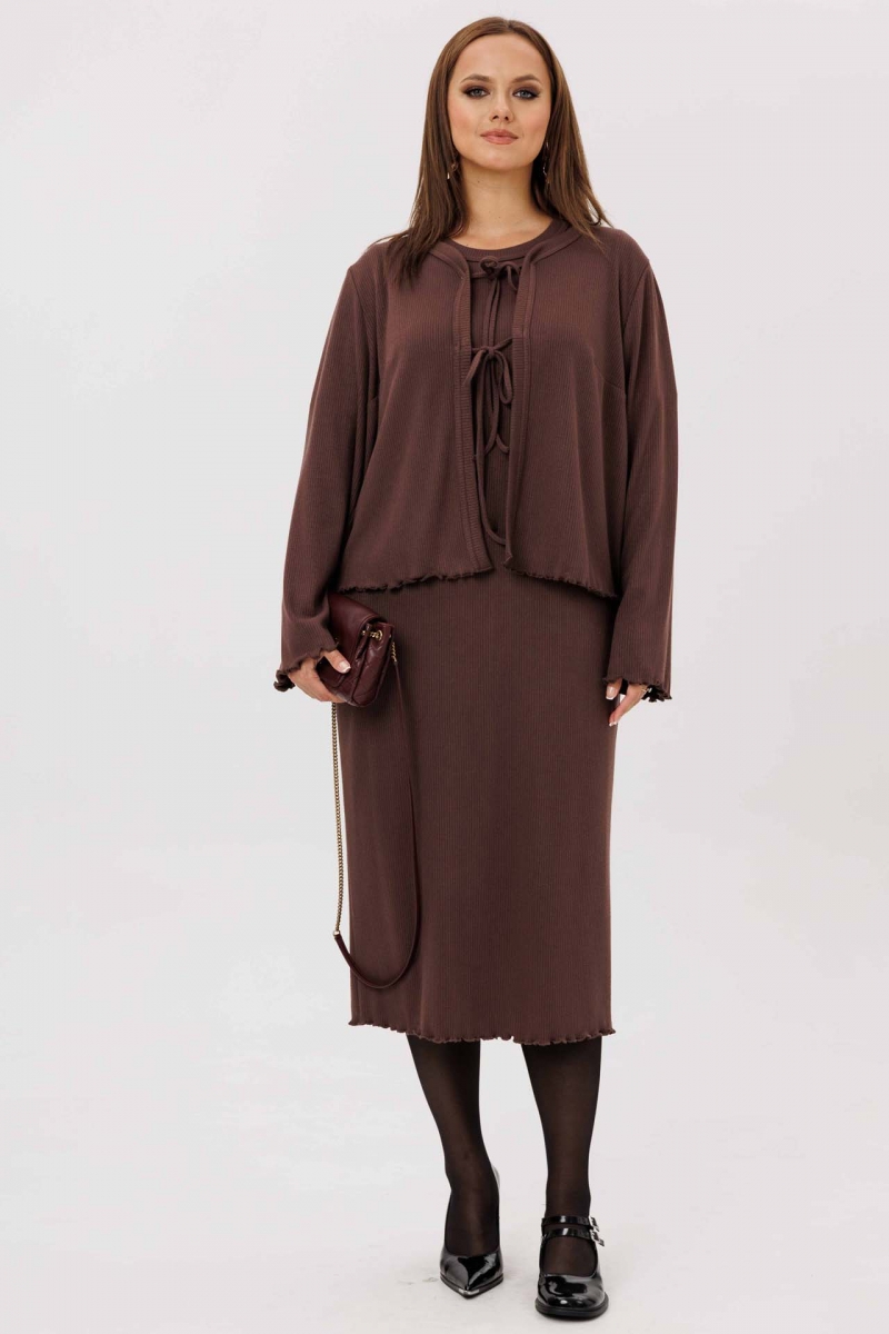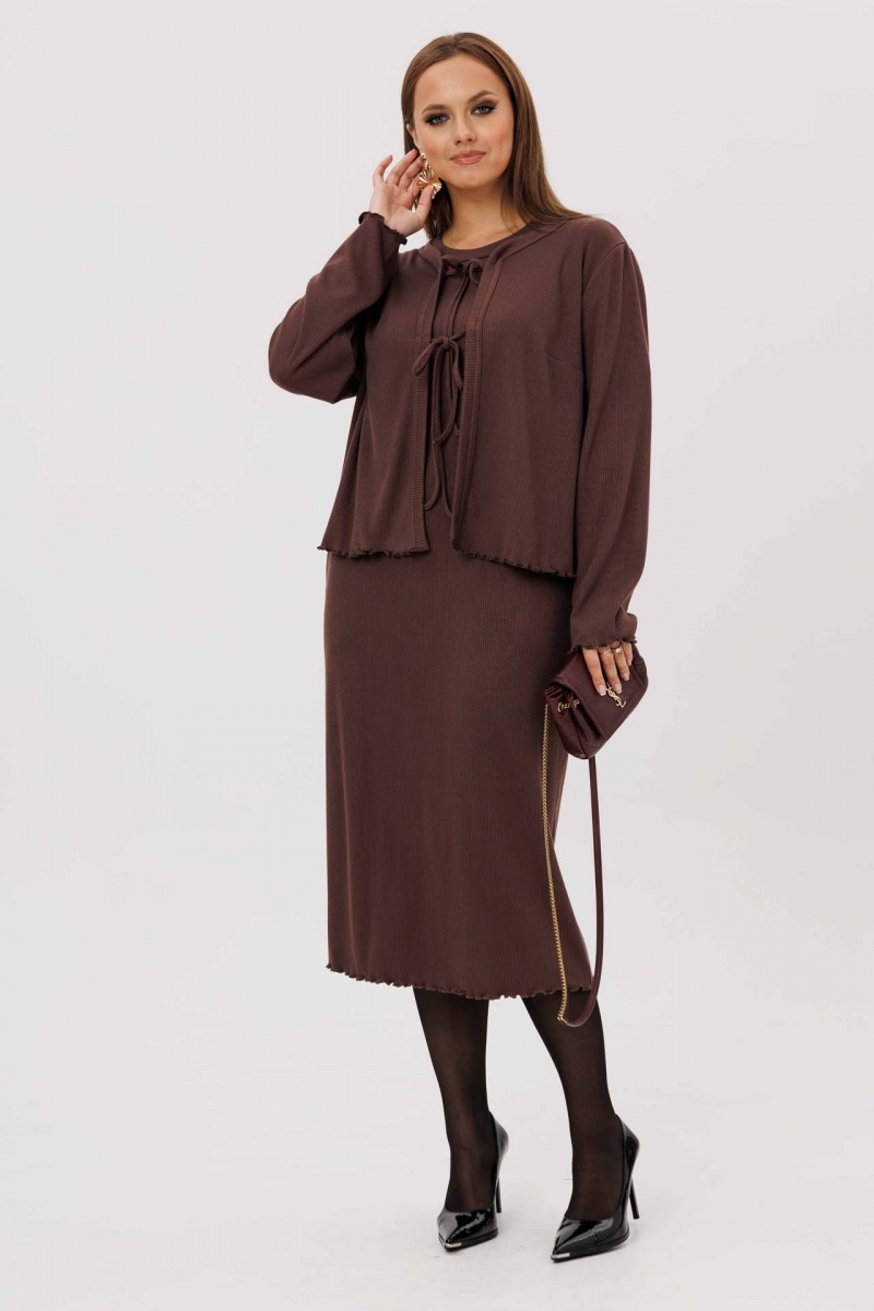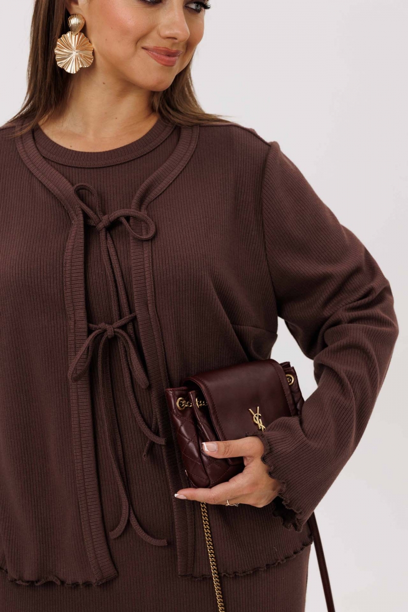 Теплая костюм: платье и жакет с декоративными завязками и объемными рукавами – акцентный элемент гардероба.
