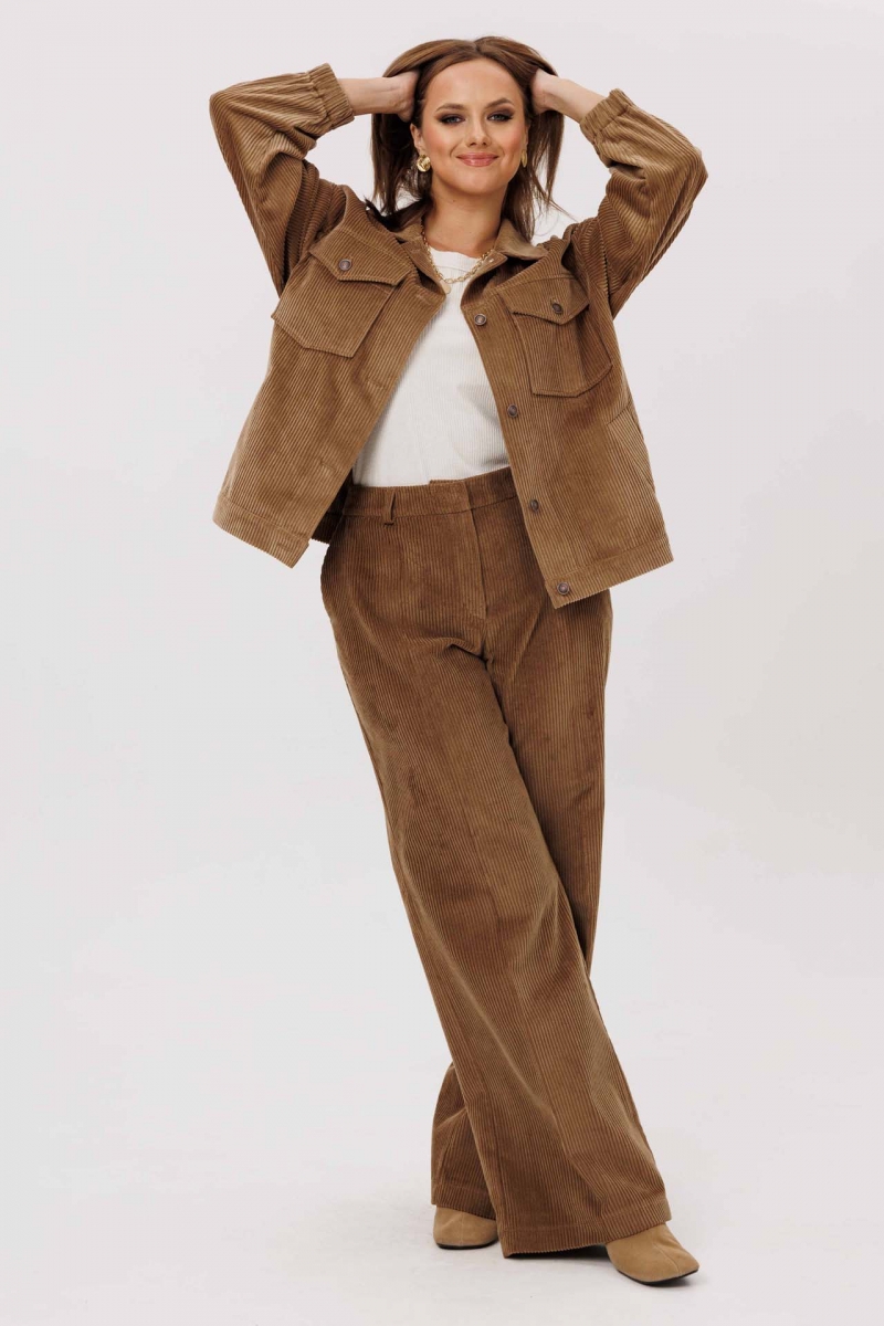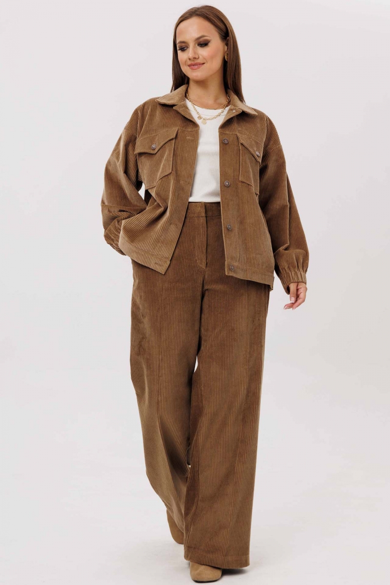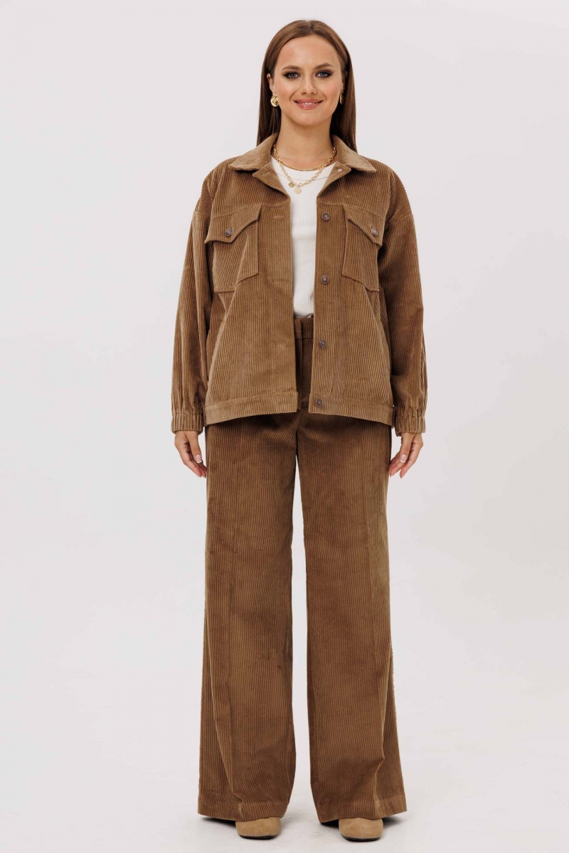 Уютный костюм из рубашки и брюк из вельвета в карамельном оттенке — идеален для повседневного гардероба.