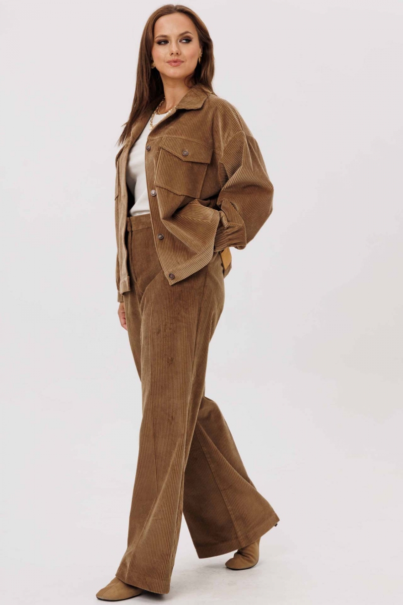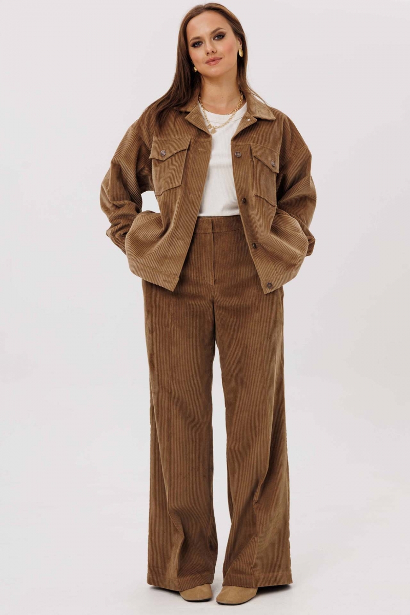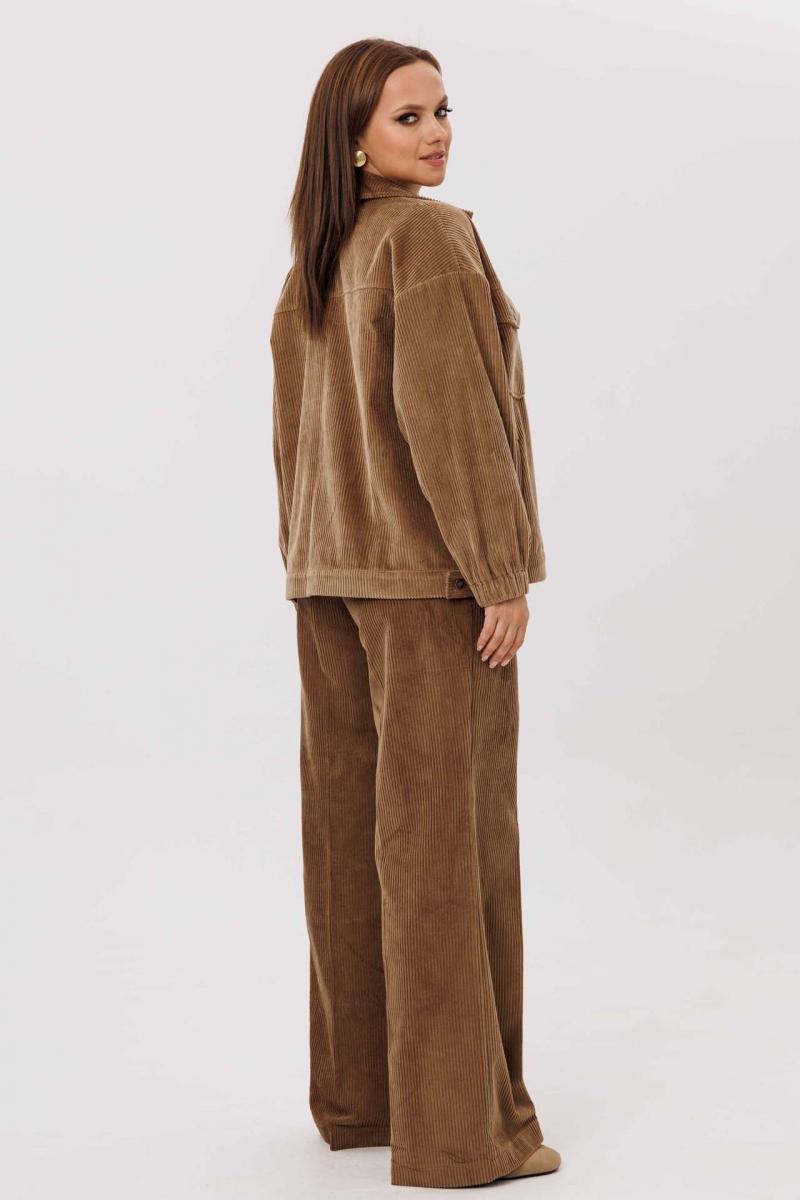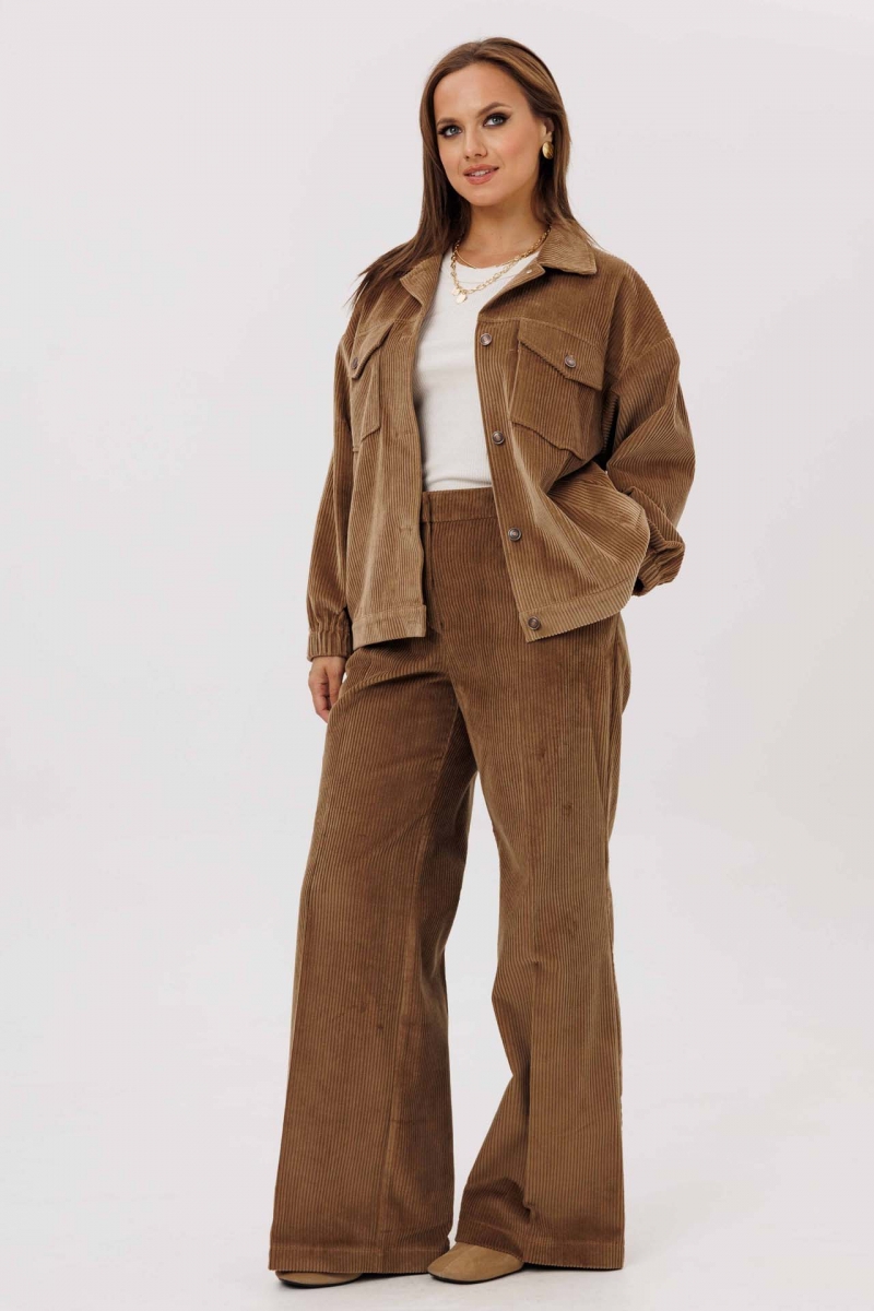 Уютный костюм из рубашки и брюк из вельвета в карамельном оттенке — идеален для повседневного гардероба.