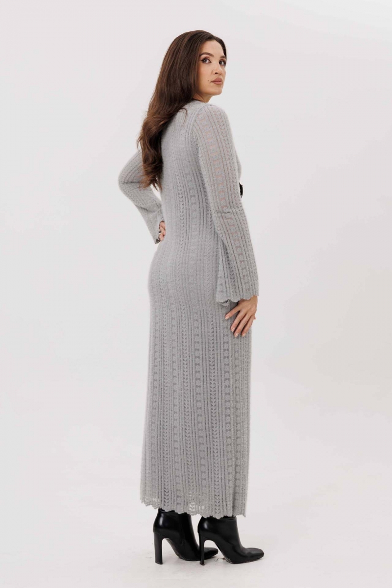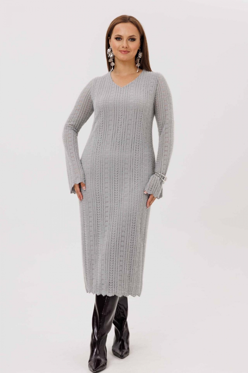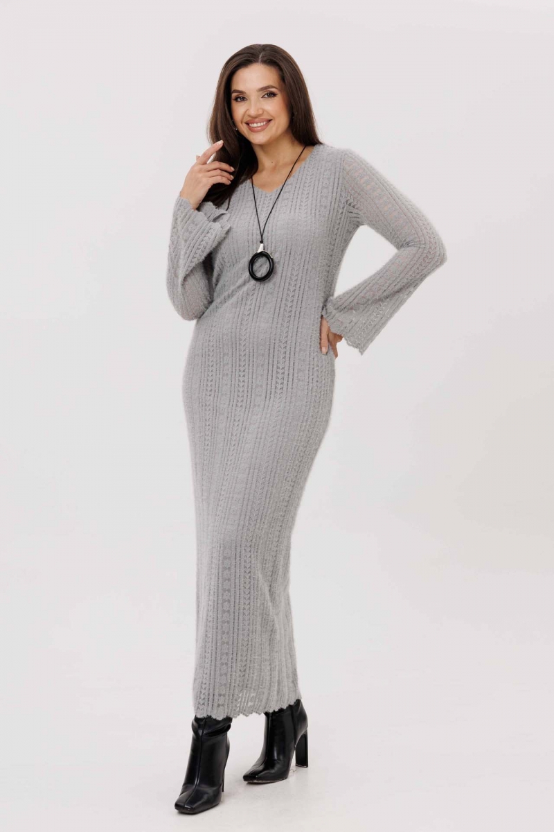 Теплое вязаное платье миди с длинным рукавом и свободным силуэтом – комфортный выбор для осени и зимы.