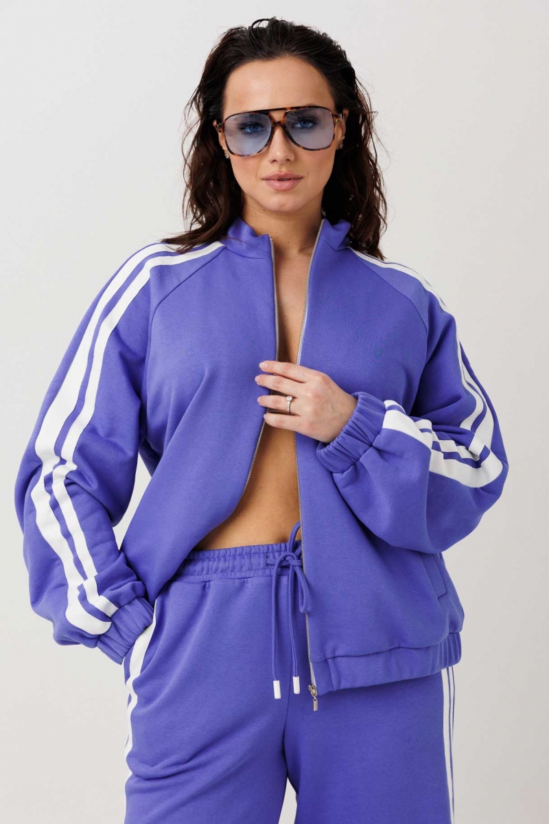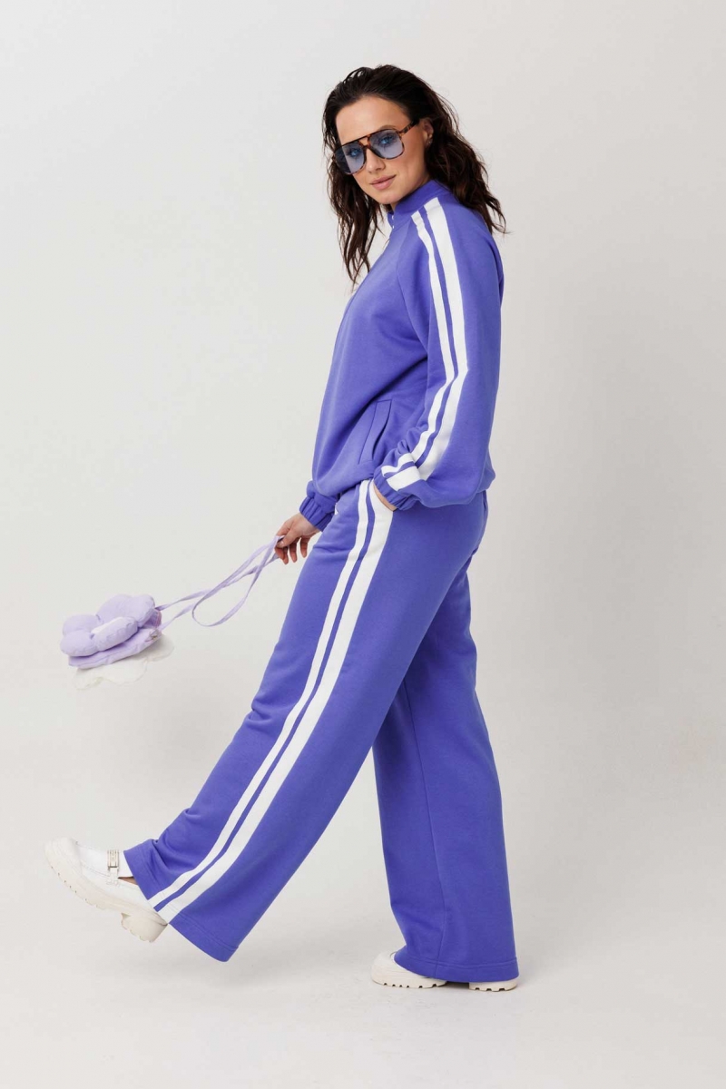 Комплект состоит из кофты на молнии и брюк прямого силуэта.