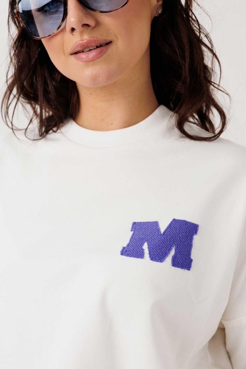 Декоративная планка с эффектом «raw edge» и аппликация «М» добавляют модели характер и делают её заметной в ассортименте спортивной женской одежды.