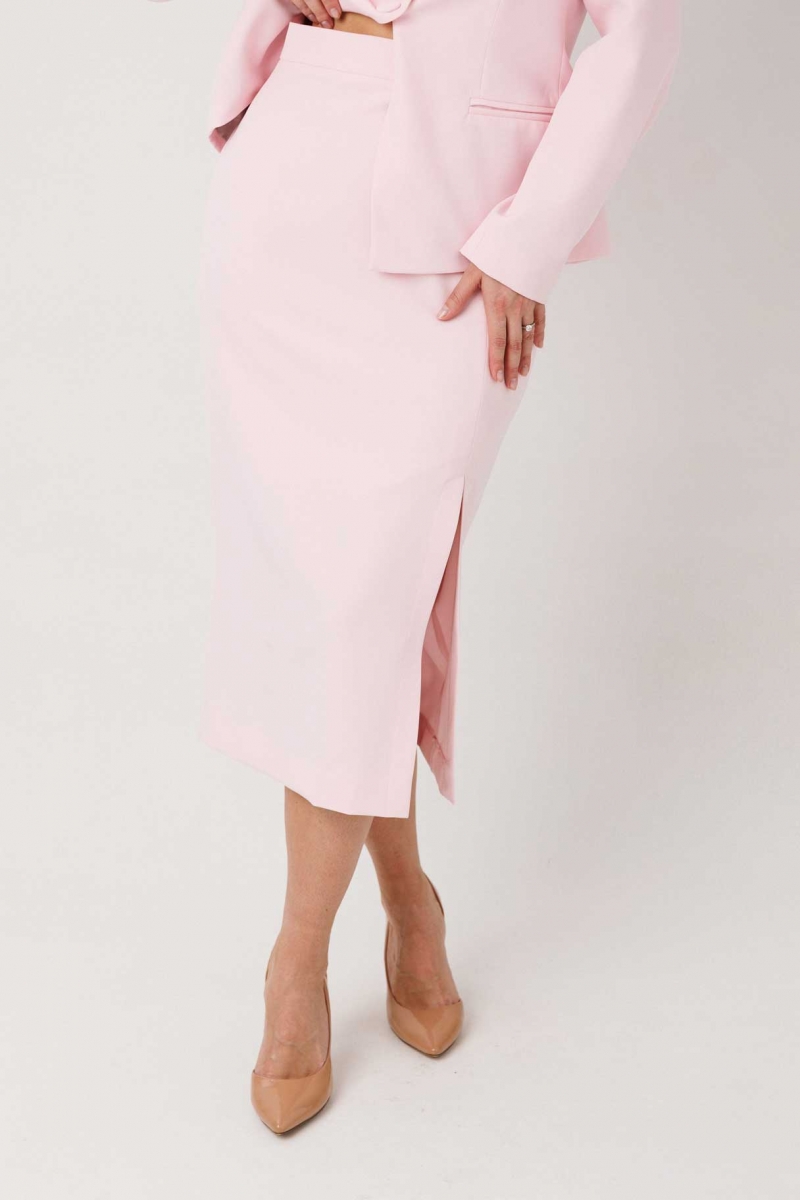 Юбка на подкладке комфортно садится по фигуре, застегивается на молнию сзади и дополнена элегантным разрезом спереди, который добавляет легкости и женственности.
