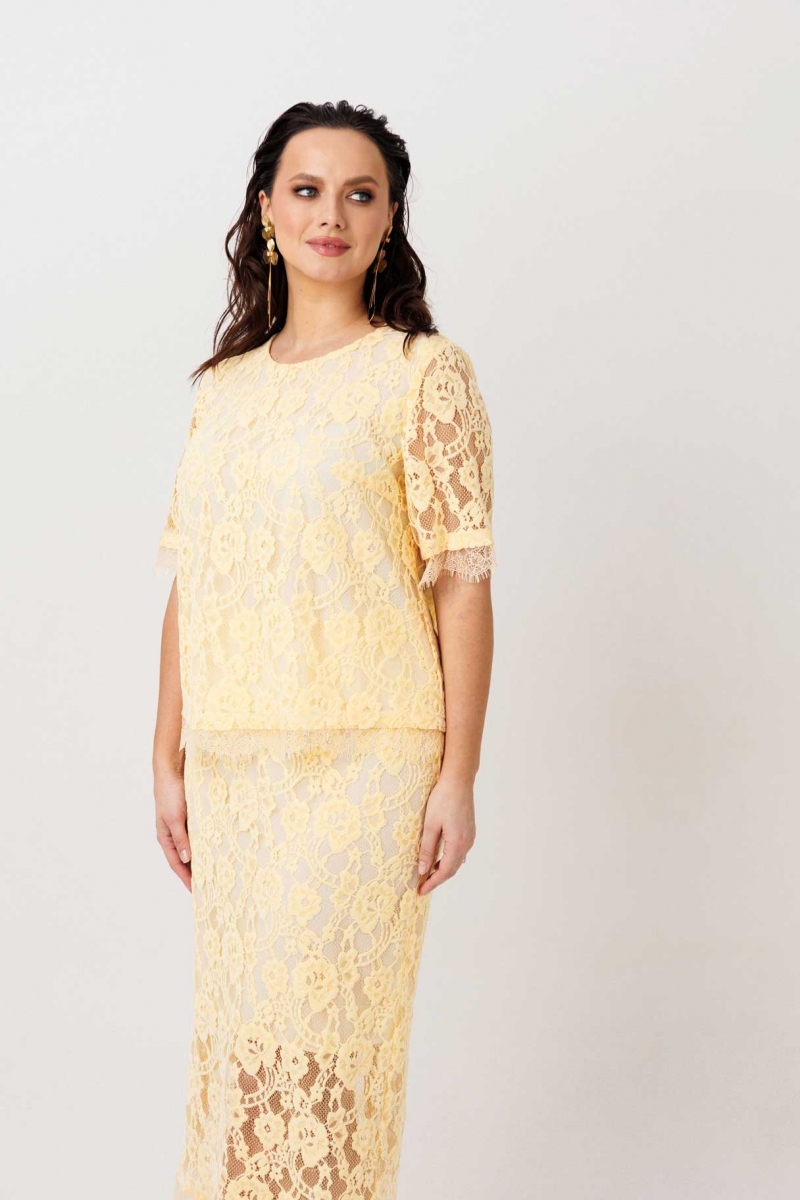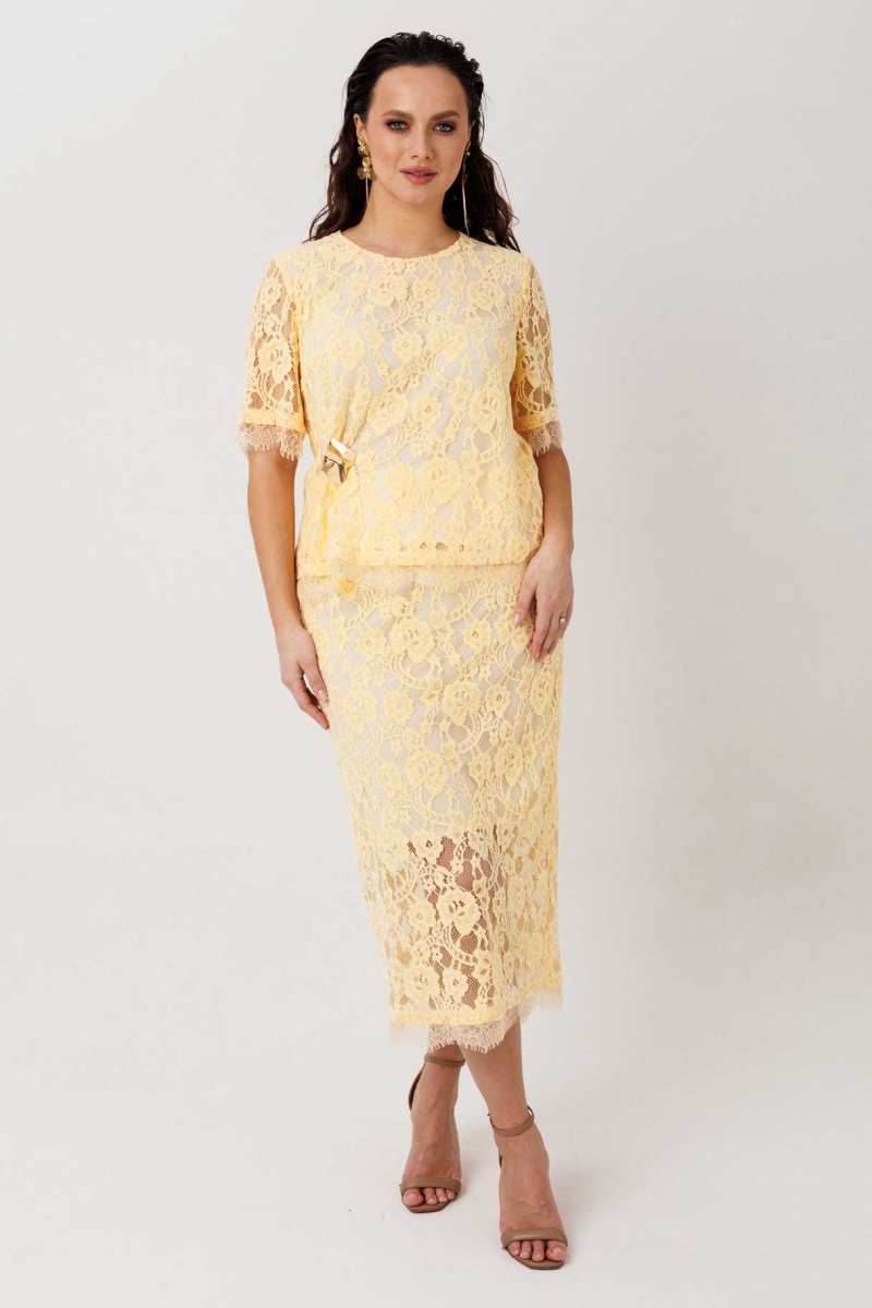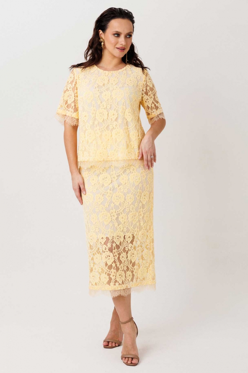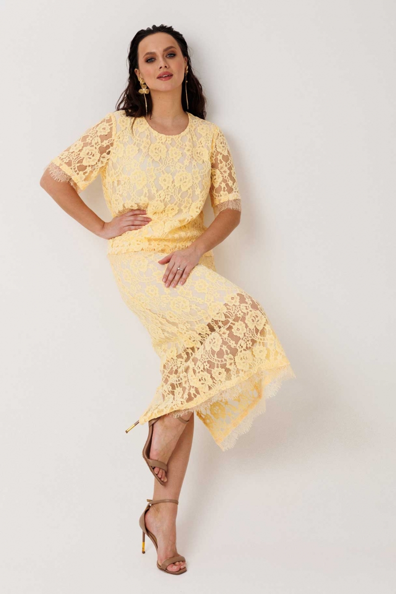 Кружевной костюм с юбкой на подкладке (блуза с вырезом «капелька»)
