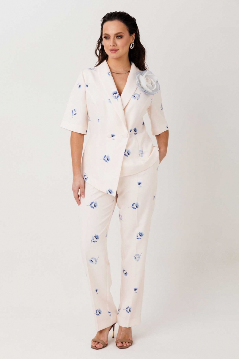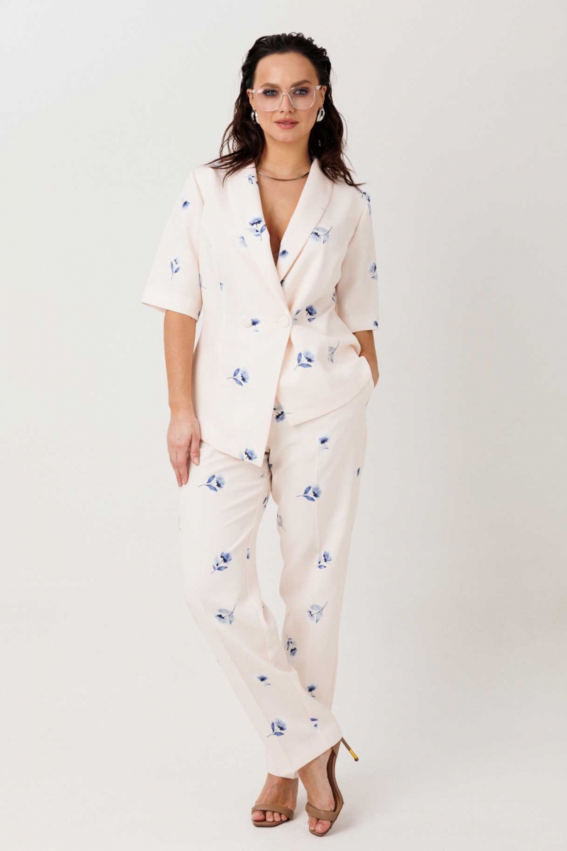 Комплект можно носить как цельный образ или сочетать жакет и брюки отдельно, создавая разные стилистические решения — от деловых до более вечерних.