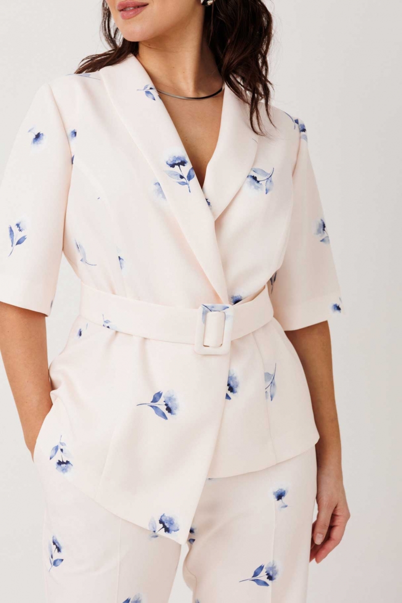 Женский костюм с авторским принтом: жакет с поясом и брюки